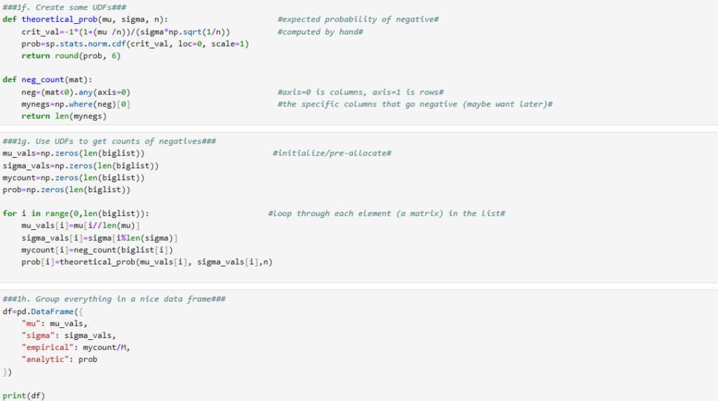 #e.g. biglist[2][:, 2] gives 3nd simulation of 3rd combo of mu and sigma#