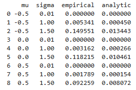 N=len(mu)*len(sigma)            #the number of times to run the simulation#